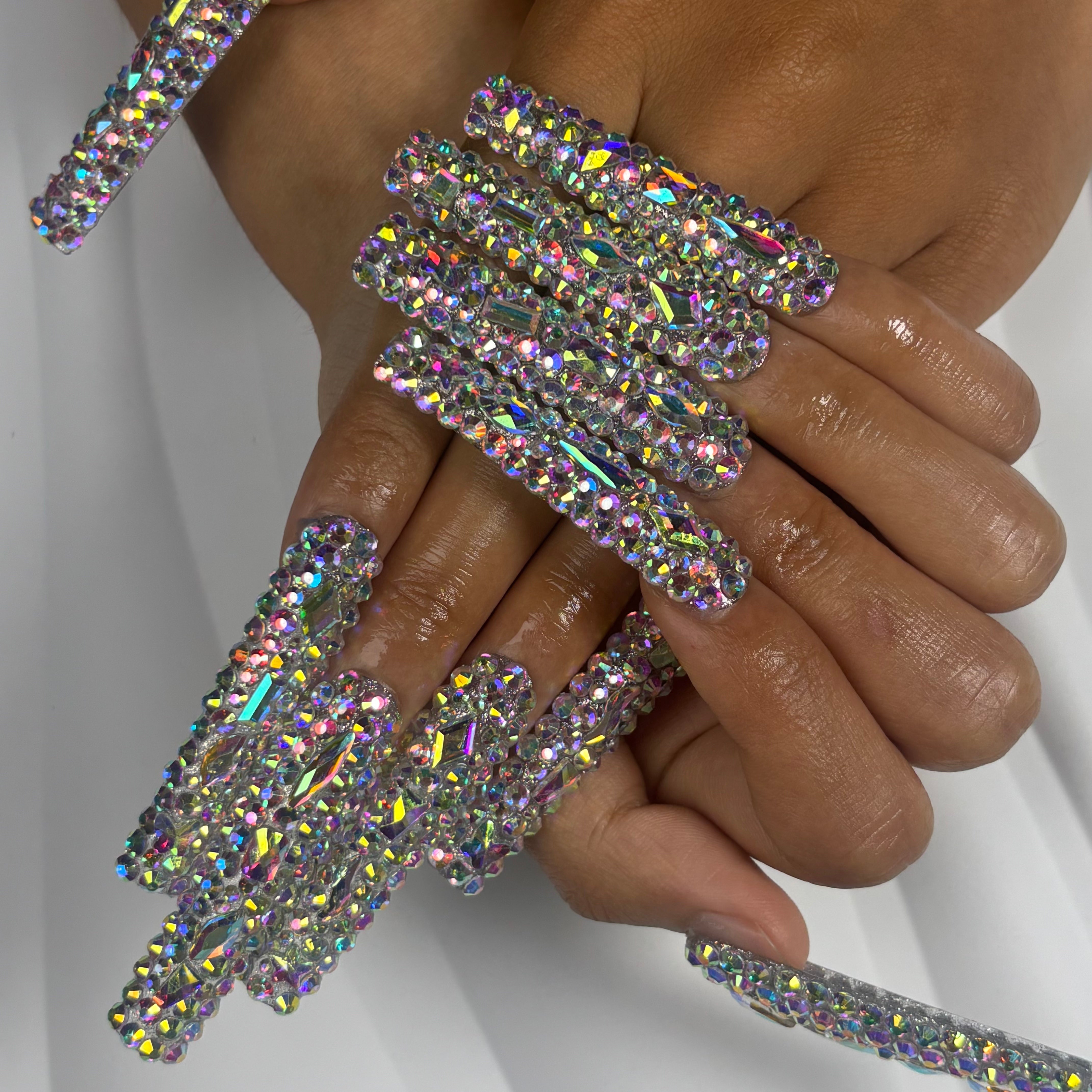 Indulge in the allure of a Glamorous Crystal Galaxy with these nails. The profusion of colorful crystals...